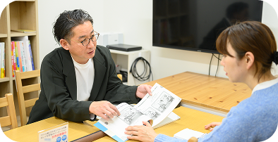 保護者の方が家庭で子どもを支えるための具体的な方法をお伝えし、ご家庭と教室が一緒にお子さまの成長を支えられるようなサポートを行っています。個別療育をより効果的にするための「家庭との連携」を大切にした「ふれあいペアレントプログラム」を実施しています。